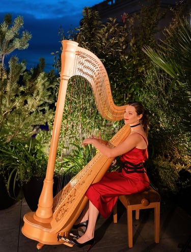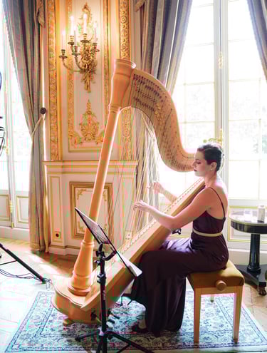 Une formule en deux temps: 50% harpe instrumentale, 50% chant accompagnement à la harpe.
